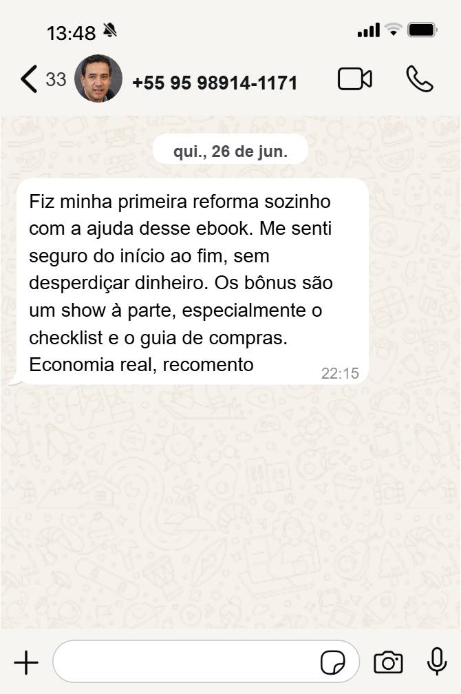 Estou oferecendo um guia completo, que será o seu manual oficial para planejar e executar uma reforma tranquila, funcional e com ótimo resultado sem gastar além do necessário.
